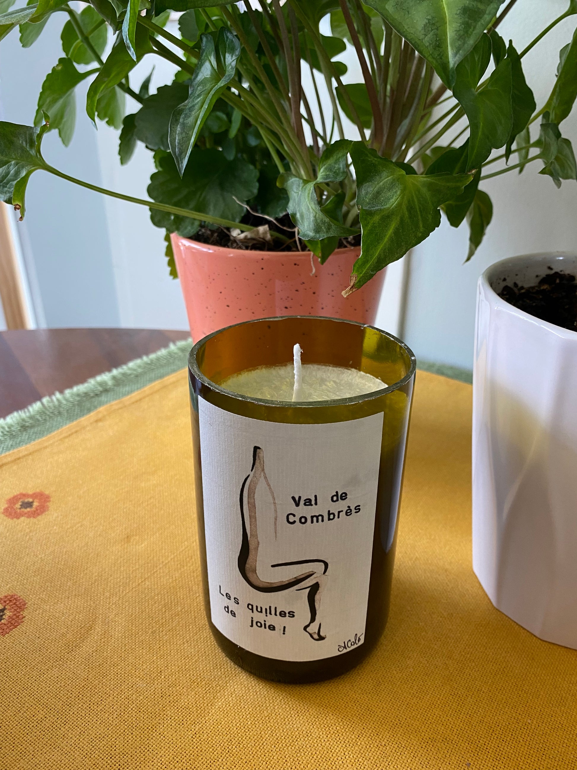 This sensual French wine bottle candle is made with all natural ice palm wax. Gold rimmed and super romantic (but also sassy and we love that).